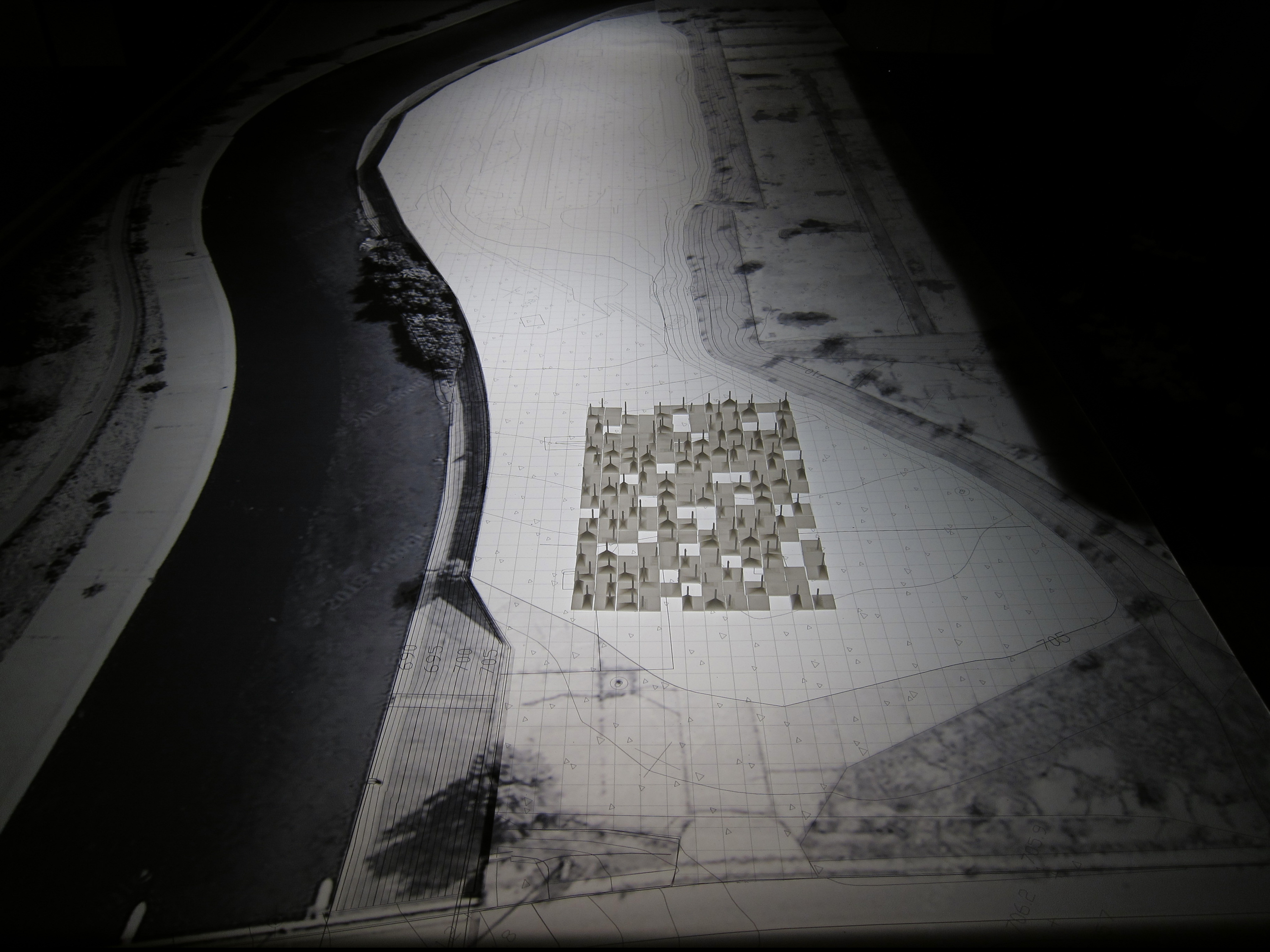 The proposal for Chevy-in-the-Hole addresses and articulates the vast ground of the charged void and brings forward a new site for the city, acknowledging its transient state. Instigating the formal and informal occupation of the site, the itinerant modules of slab and column, the most basic elements of inhabitation, oscillate between object and field; figure and ground; and the desire for monuments and that for utility. The mobile modules and their forms supports predictable activities at the same time provoking unexpected uses, and their varying geometry creates a new occupiable terrain on the “Hole” and allows the formation of a secondary topography. Constantly shifting and reconfiguring, the figured grounds suggest and support a new, if tentative, productivity of the vast site.