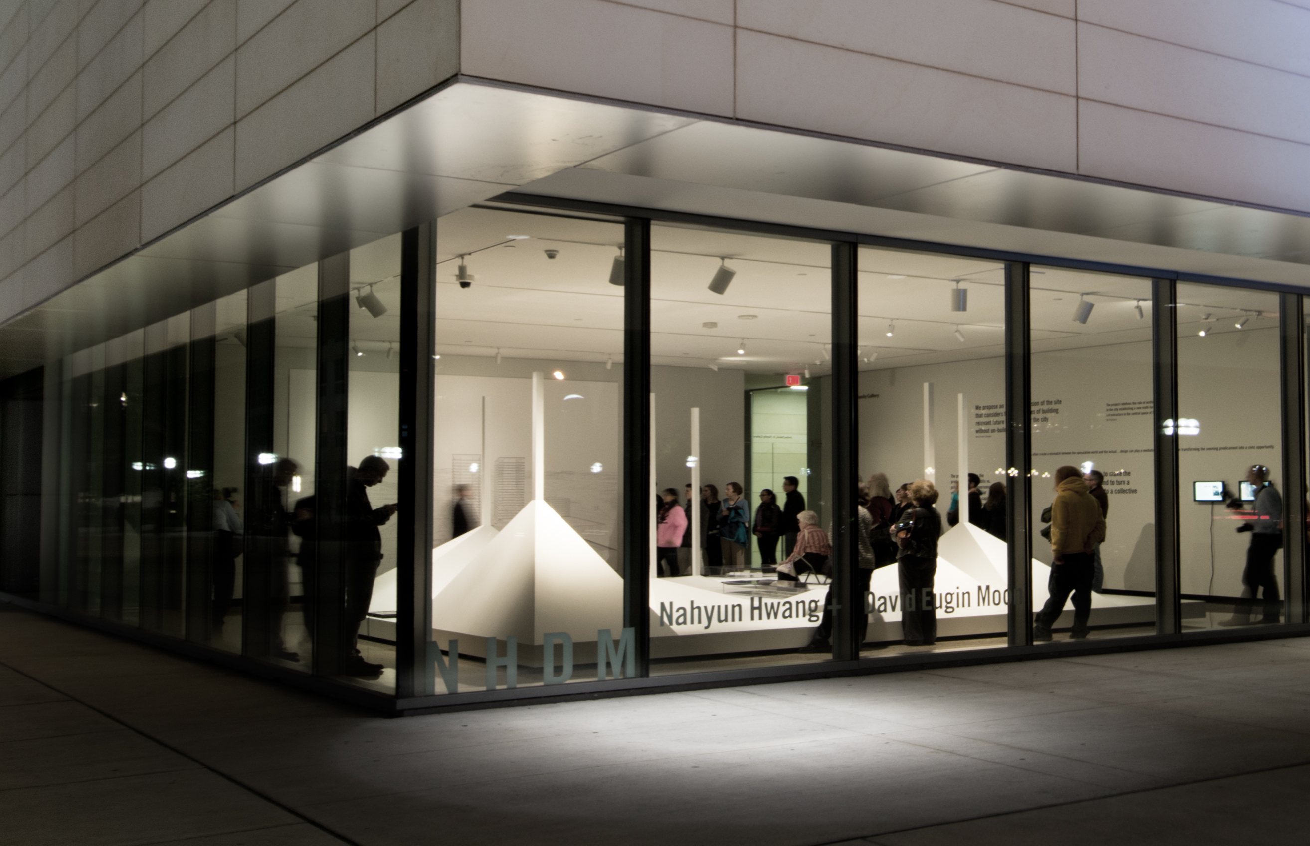 "Today's emerging talents in architecture are redefining the profession with global practices that are digitally literate and operate at multiple scales of design. This liberation of scale has allowed architects to look at issues from interiors to urban planning in new and innovative ways. Nahyun Hwang and David Eugin Moon—principals of N H D M, a New York City based studio, are representative of this new wave of architectural thinking. From the 2011 award-winning Nam June Paik Library in Yongin, South Korea, to the repurposing of abandoned modern skyscrapers in their 2012 (No) Stop Marconi proposal for Rotterdam, N H D M is a studio that is constantly exploring scale, purpose, program, function, and history to create a new sustainable framework.Comprised of videos, models, and drawings, the exhibition considers a selection of projects from 2001 to the present that reflects Hwang and Moon’s global design sensibility."